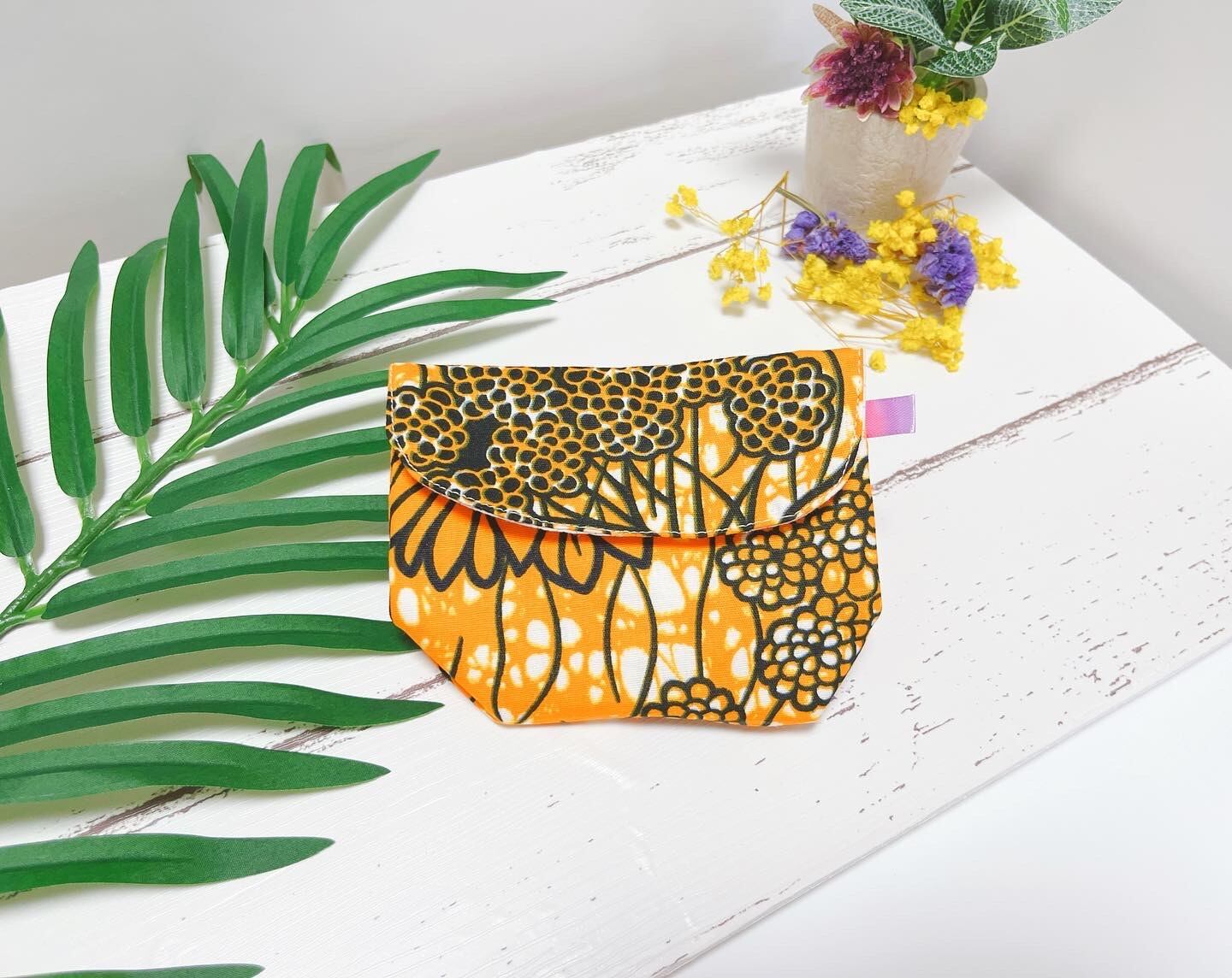 エスニック調レメディポーチ【ひまわり(オレンジ)】[マチ有](電磁波防止生地使用)