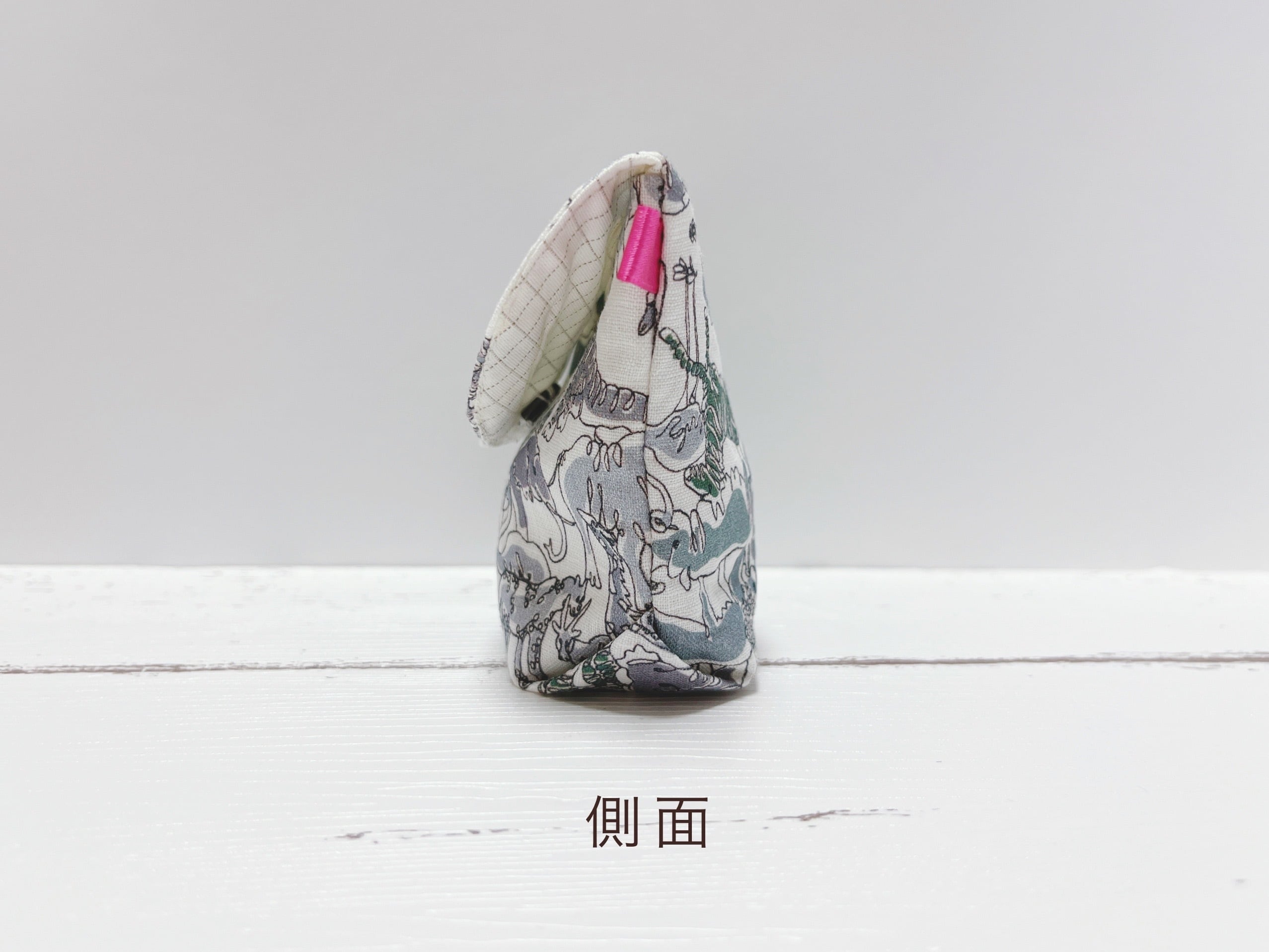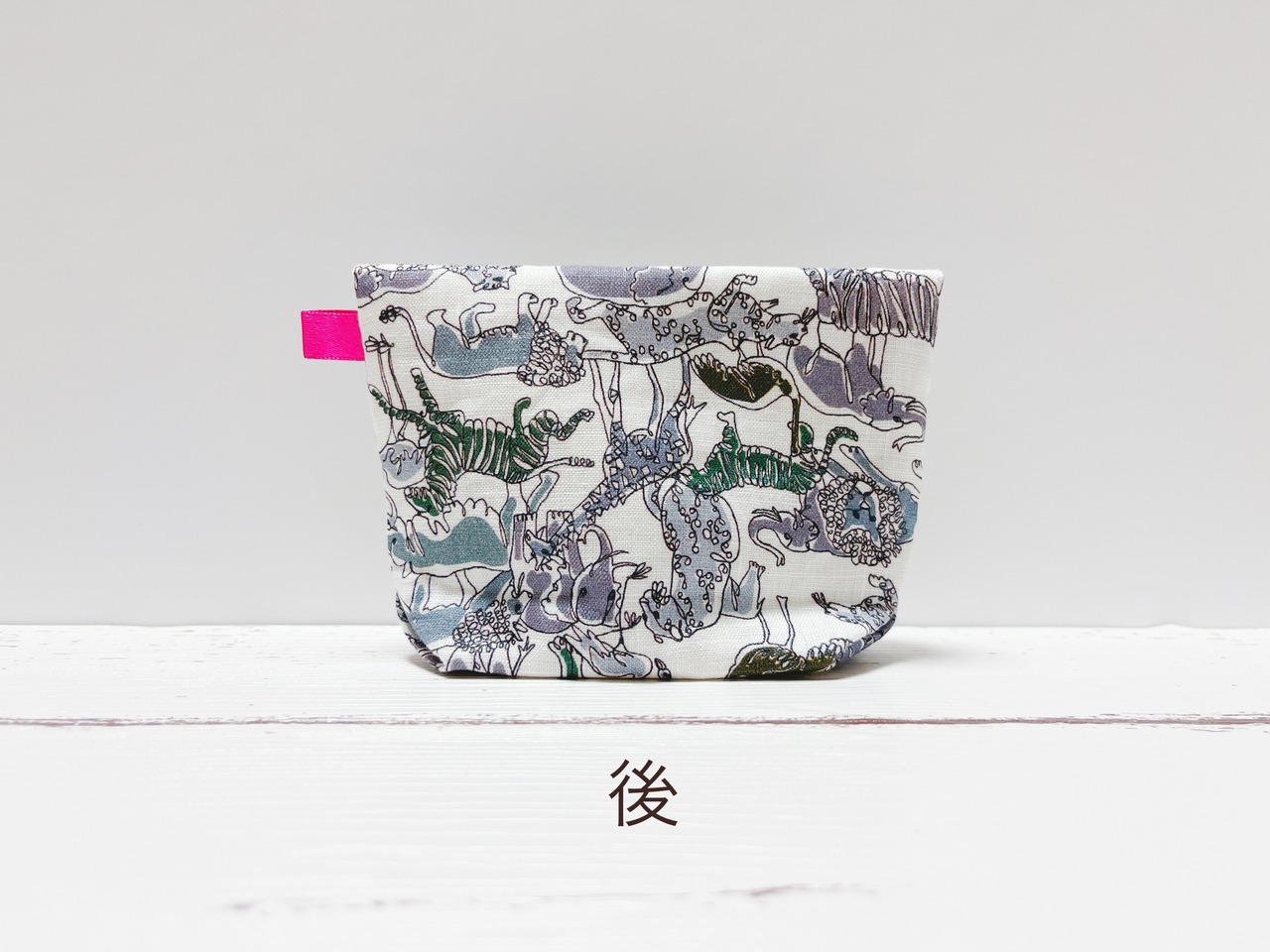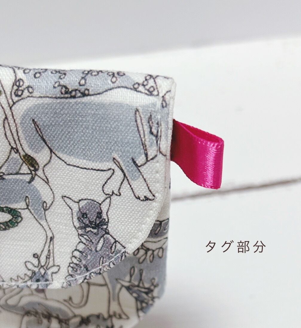 生地がモノトーンなのでアクセントとしてピンクのタグを付けております