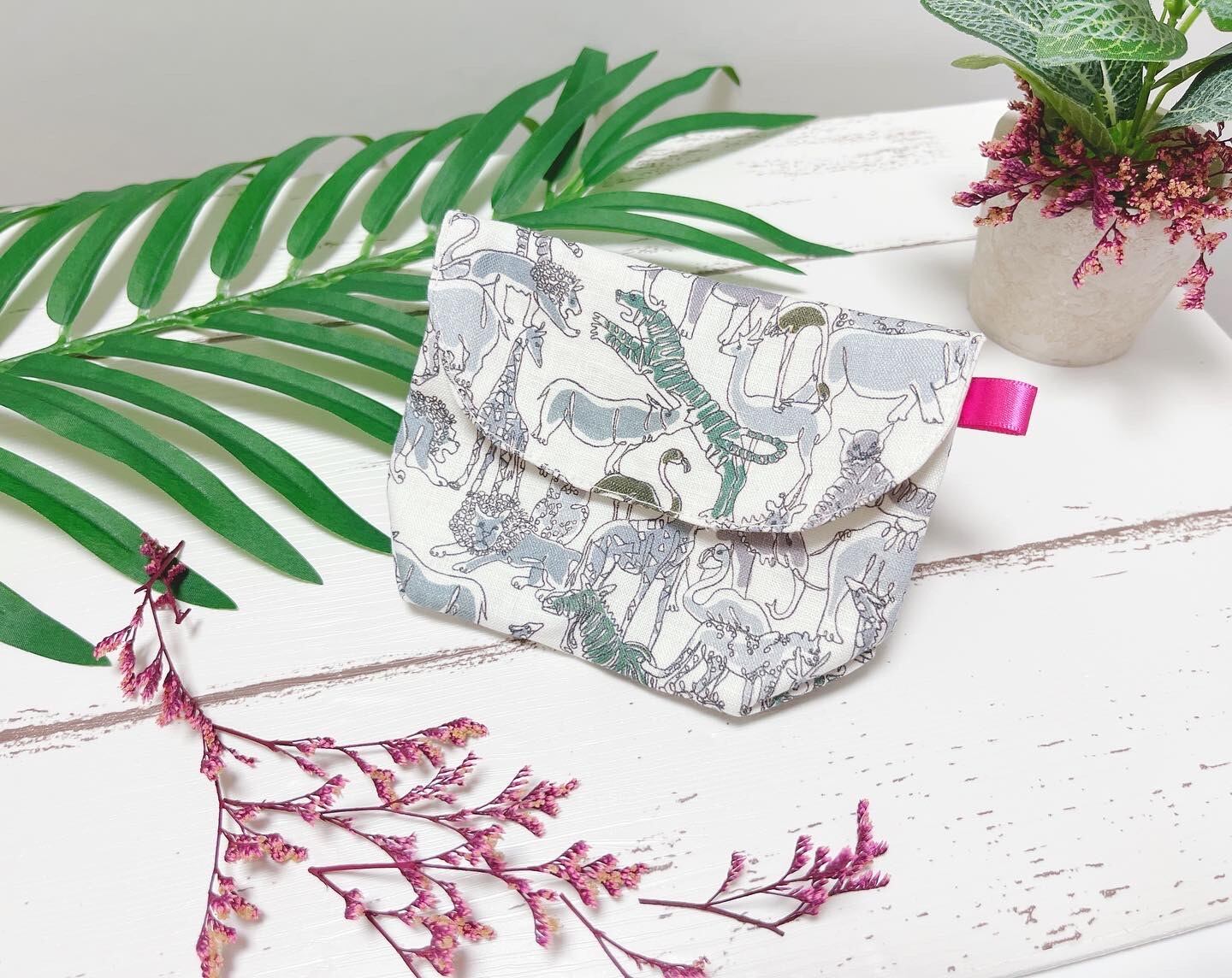 動物の生地でレメディ専用のポーチを作りました。