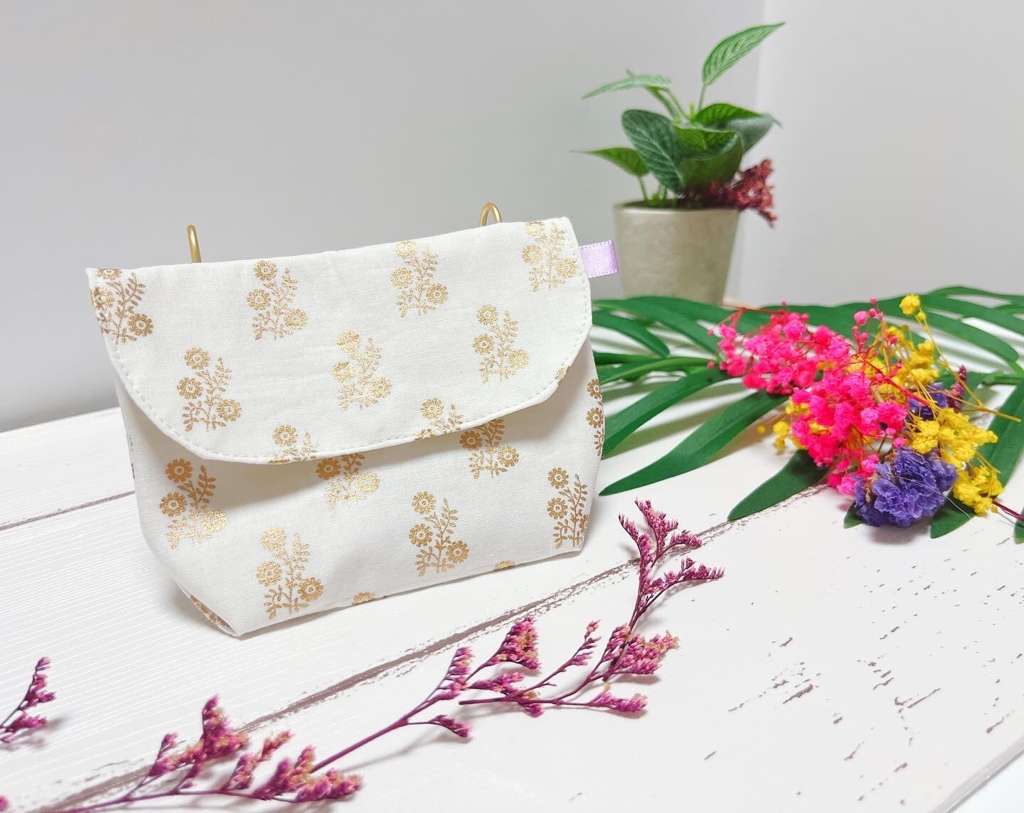 エスニック調レメディポーチ【観音花】[マチ有/スナップボタン](電磁波防止生地使用)