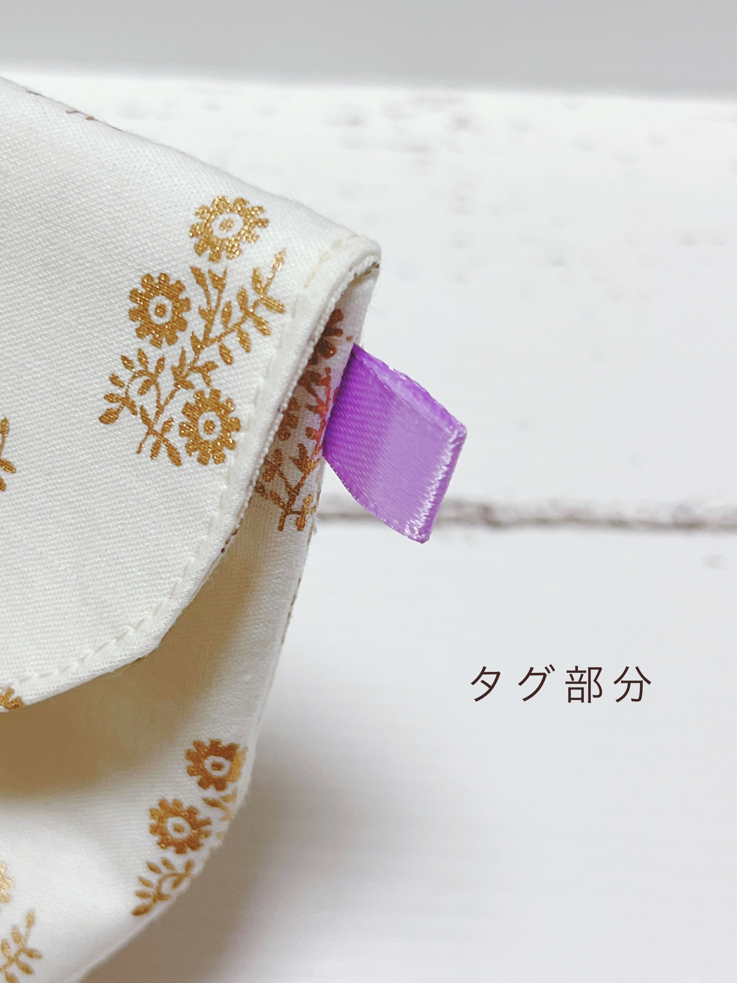 脇にタグが付いておりますので、お好きなチャーム等お付け頂けます。