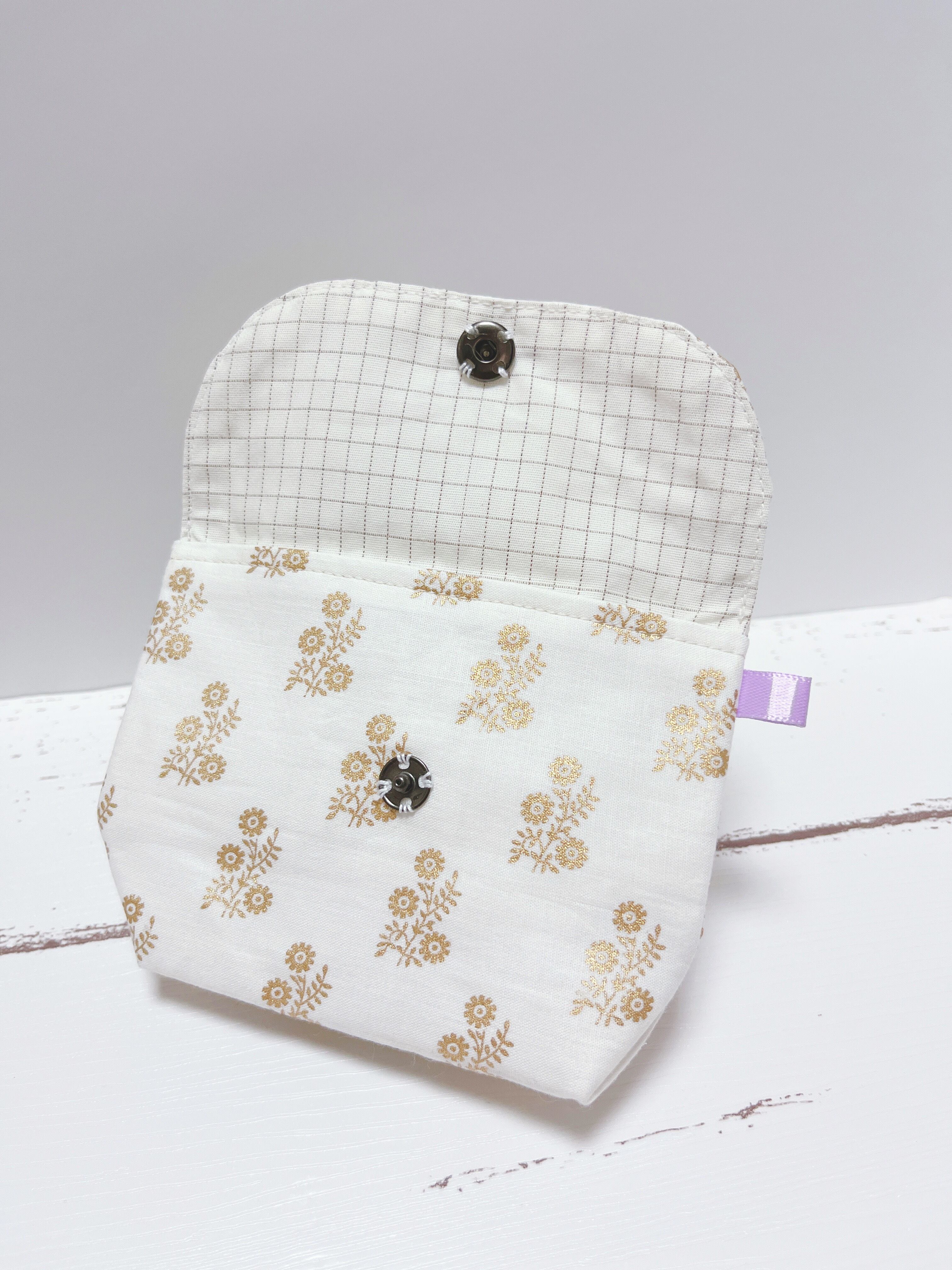 上品なエスニック風の生地でレメディ専用のポーチを作りました。